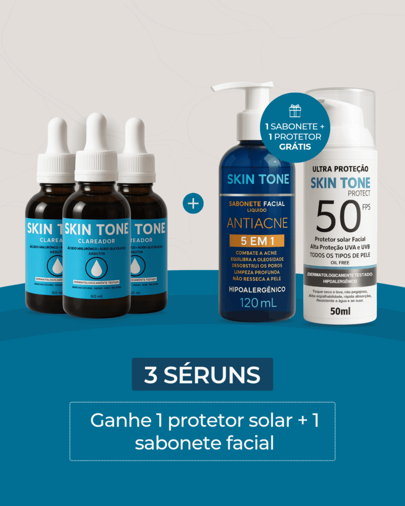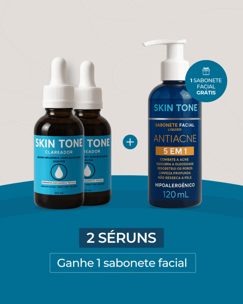 O Skin Tone é ideal para clareamento facial, combatendo manchas no rosto.